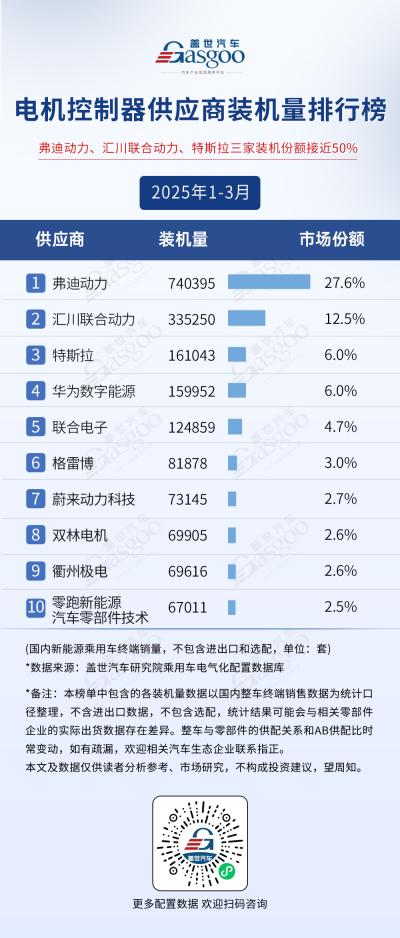 电机控制器供应商装机量排行榜:前三企业占比接近50%
