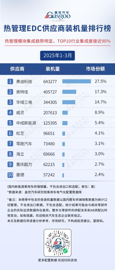 热管理EDC供应商装机量排行榜:集成化浪潮重塑产业生态