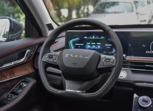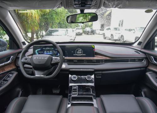 星途LX 1.5T乘风破浪版在内饰设计上与现款车型采用相同的设计风格,中控台采用撞色设计,十分具有层次感。双12.3英寸的全液晶仪表盘加中控多媒体屏的悬浮式双联屏设计,搭配三辐式多功能方向盘、全新电子挡把、木纹和缝线皮革,提升了车内的科技感和品质感。此外,新车还增加了全黑及黑棕两种内饰配色可供选项。