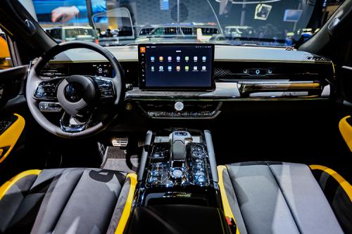 超豪华,户外出行头等舱。山海炮Hi4-T座舱大面积采用软质包覆,配备电动真皮座椅,首创后排电动迎宾调节,配合14.6英寸中控大屏+12.3英寸仪表、64色氛围灯等豪华配置,真正为全家出行提供安静、舒适的高品质第三空间;创新运用双后围、隐藏式后门缝等全密封设计,通过双层隔音玻璃、尾翼导流等加持,NVH表现遥遥领先,打造图书馆级静音体验!