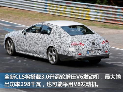 编辑从美国汽车媒体Motor1获悉,奔驰全新CLS在纽博格林赛道的路测谍照再次曝光,该车预计将于今年9月14开幕的法兰克福车展亮相,于2018年早期正式投产。全新CLS将与E级同平台打造,预计将搭载3.0升涡轮增压V6发动机,最大输出功率298千瓦,与现款相比动力提升,新车也可能采用动力更强劲的V8发动机。
