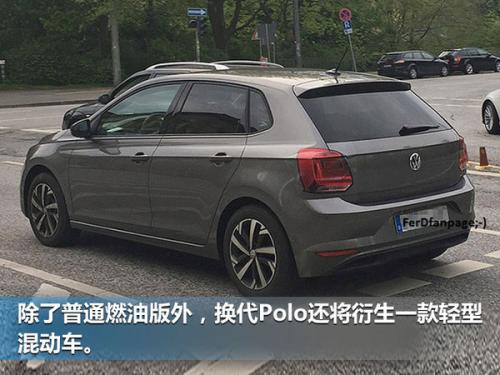 传动装置上,换代Polo将标配一台5速和6速手动变速箱,提供7速双离合变速箱供选配。根据大众官方透露,换代Polo并不会配置全驱驱动系统。另外,除了普通燃油版外,换代Polo还将衍生一款轻型混动车,至于大众是否会推换代Polo纯电动版暂时还不得而知。
