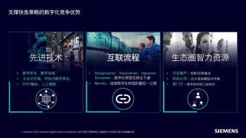 汽车行业的实践已经验证了这一模式的价值:从缩短25%的开发周期到提升95%的数据准确性,从实现模块化设计到构建供应链数字主线。随着工业AI技术的发展,西门子数字化工业软件正助力汽车行业进入“虚实融合、自主决策”的新阶段。