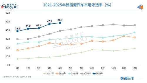 尤其值得注意的是,5月,新能源汽车新车销量已占当月汽车新车总销量的48.7%,接近半数份额,标志着新能源汽车正逐步成为汽车消费的主流选择。