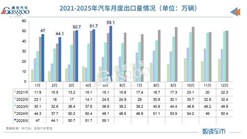 2025年5月,我国汽车出口延续了增长态势,单月出口量达55.1万辆,环比增长6.6%,同比增长14.5%。其中,乘用车出口表现尤为亮眼,46.8万辆的出口量环比增长8.5%,同比增长17.7%;而商用车出口则略显疲软,8.3万辆的出口量环比下降2.8%,同比微降0.5%。这一数据反映出乘用车市场的强劲需求,尤其是新能源汽车的快速崛起,成为推动出口增长的核心动力。