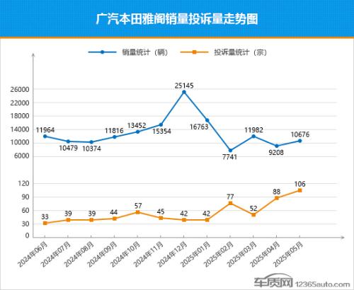 作为中型车市场中的老将,雅阁近段时间的市场表现不温不火,在新能源车型的冲击下,虽然能保持着月销过万的成绩,但市场份额却在逐年缩减。特别是进入2025年以后,销量更是一蹶不振,有2个月甚至降至不足万辆。5月,雅阁的销量虽然迎来小幅反弹,但仍处于相对低位。与销量走势形成鲜明对比的是雅阁的月投诉量,自1月份开始便一直处于高位,5月份的投诉量更是突破百宗,环比上涨20.5%,创造近一年来的最高纪录。据车质网数据显示,雅阁的投诉问题依旧集中在“吃胎偏磨”,部分车主反馈车辆轮胎内侧出现严重磨损,有的甚至已经露出钢丝层,严重影响日常使用,认为存在安全隐患。截至发稿,厂家对车主提出的诉求尚未给出合理、有效的解决方案,导致投诉量持续攀升。从其5月份的投诉销量比数值来看,虽然较4月份略有降低,但仍保持在高位,在所有榜单车型中排名靠后。短期来看,持续恶化的口碑表现或将给雅阁的产品形象带来严重的负面影响,市场表现恐难有起色。