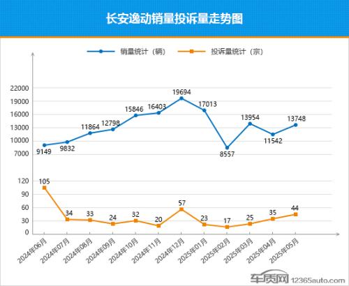 作为长安旗下轿车阵营的销量担当,长安逸动曾连续多年保持着月均销量过万的市场佳绩。但在进入2025年后,其月销量表现开始出现波动,忽高忽低。5月份,逸动完成小幅反弹,环比上涨19.1%,但与巅峰阶段相比仍有不小的差距。值得注意的是,与月销量起伏不定相比,逸动的月投诉量却呈现出稳步向上的势头,5月份投诉量达到年内最高点,口碑表现持续转差*。据车质网数据显示,近期逸动的投诉主要集中在变速箱方面,如“变速箱顿挫”、“变速箱漏油”。此外,5月份“车载互联故障”开始增多,部分车主反馈逸动存在车载蓝牙连接不上、无法下载应用等,影响日常使用。从其5月份的投诉销量比数值变化来看,得益于销量的反弹,与4月份相比数值有所下降,投诉销量比表现略有好转。短期来看,借助5月份的销量反弹,长安逸动的市场表现有望企稳回升,但前提是要有一个良好的口碑表现。