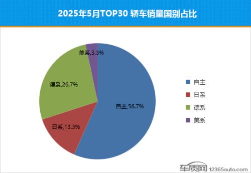5月,日系品牌的占比较上个月提高了3.3个百分点,自主和德系品牌占比略有下降。美系品牌本月重返榜单,但入榜车型依然只有1款。
