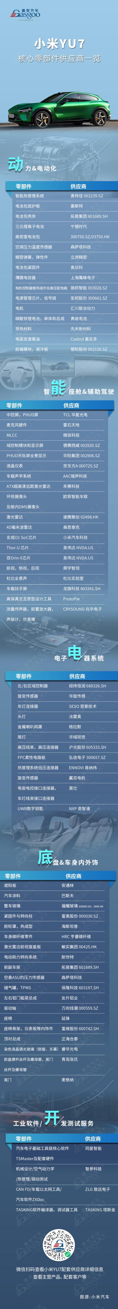 那么,除了发布会提到的少量背后供应链力量外,小米YU7众多强大配置背后,还有哪些对应的供应商呢?为更好了解这款新车,盖世汽车收集整理了小米YU7的核心零部件供应商信息,欢迎更多行业朋友进行信息补充和更正。