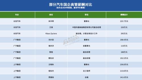 从各大车企年报披露的薪酬数据来看,这种差异化趋势愈发明显。国有背景的车企在薪酬设置上相对克制,如广汽集团、上汽集团和长安汽车等现任董事长年薪多在100万-300万元区间。反而是长安汽车外聘人员Klaus Zyciora偏高,薪酬接近300万元。虽然没有拉开明显差距,却也展现了高薪聘请外部人才的理念。