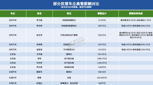 另一方面,传统车企中也出现分化。吉利、长城、比亚迪等民营车企多数高管薪酬上涨,而传统国企则整体出现回落。