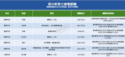 还有就是理想创始人李想的6.39亿天价薪酬、小鹏董事长何小鹏合计25.53亿港元的激励股份,都是“账面高薪”,而非实际收入。实际上,两人去年薪酬都在200万元左右。零跑汽车创始人朱江明基本年薪才8.8万元。