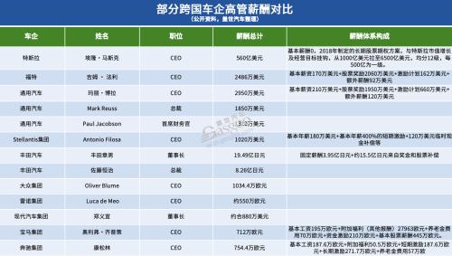 从数据来看,车企高管薪酬的“金字塔尖”被跨国车企牢牢把控。在跨国车企中,动辄千万美元的年薪是常态,这种超高薪酬不仅体现了个人能力的市场价值,更是企业多元化激励机制的集中展现。