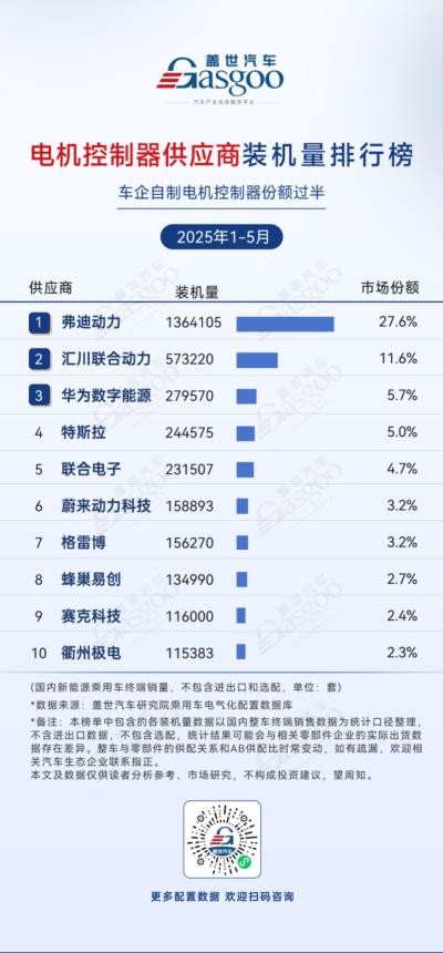 电机控制器供应商装机量排行榜(2025年1-5月)