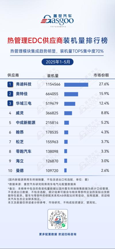热管理EDC供应商装机量排行榜(2025年1-5月)