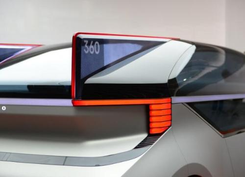 360c概念车的外观造型非常具有科技感,采用方盒式设计,极大提高了车内空间,车身上半部采用了全玻璃座舱盖,细长的头灯贯穿整个车头,在左右两端除了保留了锤子头造型之外,在两侧还多出一个小“机翼”。