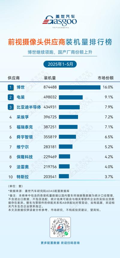 前视摄像头供应商装机量排行榜