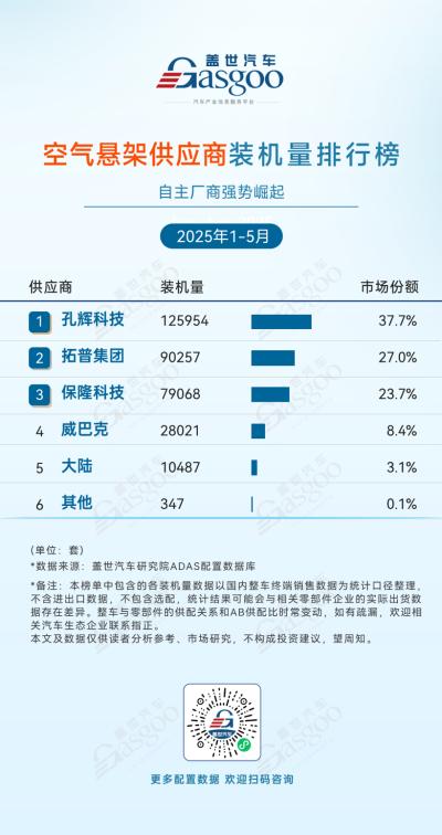 空气悬架供应商装机量排行
