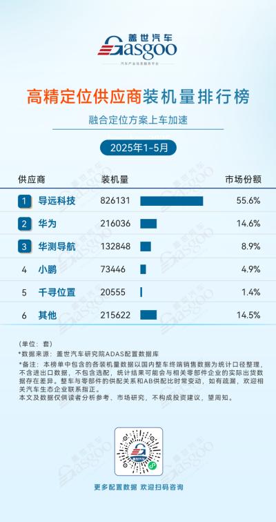 导远科技,1-5月装机量826131套,市场份额55.6%。