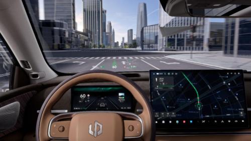 新车最重磅的升级之一是搭载60英寸AR-HUD,采用DLP影院级投影技术,即便雨雪天或戴偏光镜也能清晰显示导航路径,实现7.5米虚拟成像距离。