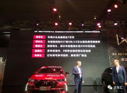 值得一提到是,DS在成都车展还同步开启年度团购会,推出了包括购车礼、养车礼、置换礼金融礼、专享礼共五重购车大礼。