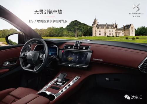 DS7歌剧院波尔多红内饰版车型仅在中国市场投放,限量100台。车内采用大量波尔多红顶级Nappa真皮包裹,酒红色相对非常有质感。