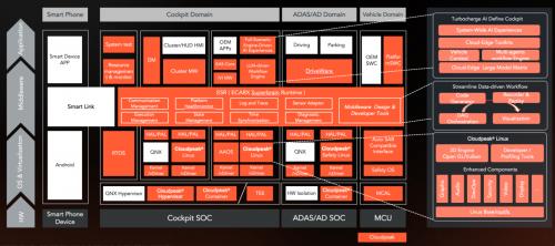 软件方面,随着智能汽车E/E架构逐渐趋于集中化,汽车软件系统出现了多种操作系统并存的局面,这也导致系统的复杂性和开发成本的剧增。亿咖通*云山跨域软件平台采用SOA分布式通信架构,可以支持完整的智舱、智驾、车控、手机域的所有相关软件栈,同时兼容AUTOSAR标准的中间件,从而实现软硬件的充分解耦,降低开发成本的同时还能快速适配不同生态系统,并将解决方案的开发周期缩短20%以上。