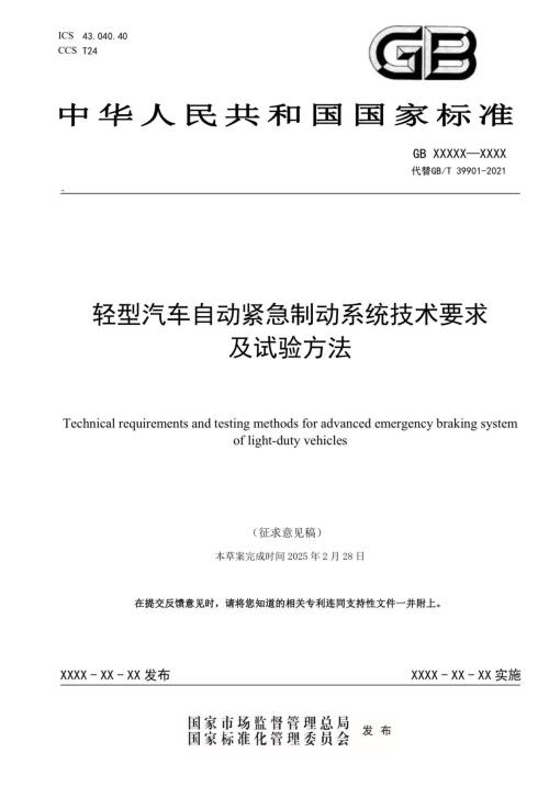日前,备受关注的强制性国家标准《轻型汽车自动紧急制动系统技术要求及试验方法》(以下简称“新国标”)意见征求阶段已经结束。该标准将替代现行国标GB/T 39901-2021,计划于2028年1月1日正式实施。
