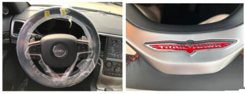 内饰部分,Trailhawk车型在内饰设计上也更加注重个性的营造,包括在座椅、车门两侧以及方向盘等处采用了红色缝线修饰,同时在座椅上采用了Trailhawk专属刺绣等。