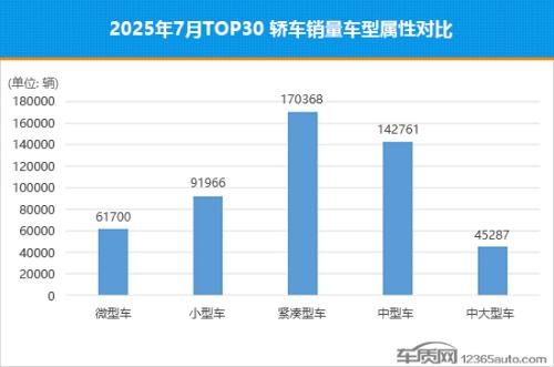 7月,紧凑车销量反超中型车排名首位,环比上涨6.5%。同样出现环比增长的还有微型车,较6月份上涨13%。达到年内第二高点。相比之下,中大型车本月销量出现明显回落,环比下降约28%。
