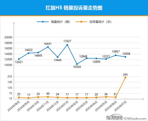 从红旗H5近一年来的销量投诉量走势来看,进入2025年后,其市场表现不温不火,虽然保持着月均过万的销量成绩,但与2024年巅峰时期相比仍有一定差距。7月,红旗H5意外遭遇“滑铁卢”,销量环比下降6.6%,投诉量暴涨6.9倍。据车质网数据显示,红旗H5的投诉主要集中在“系统升级问题”,部分车主反馈,购买的红旗H5车型的车机系统长时间未得到更新,导致车机出现卡顿、黑屏等问题。另外,车机自带的地图版本低,还经常出现导航偏差;车机不支持手机互联功能,严重影响车主日常使用。由于厂家针对车主的诉求未能给出合理的解决方案,进而引发车主集体投诉。截至发稿,该事件仍在持续发酵中。从其7月份投诉销量比表现来看,数值较6月份大幅提升,在所有榜单车系中排名垫底,表现持续转差。短期来看,红旗H5的口碑情况持续恶化,市场表现或将转入下行通道,未来一段时间内难有太大起色。