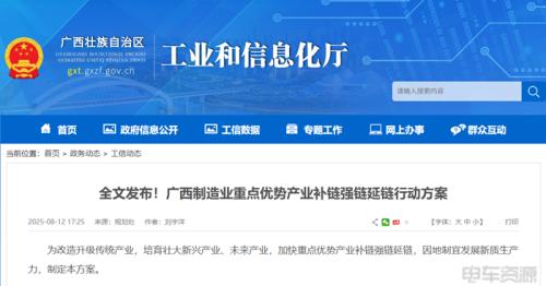 在产业发展方向上,广西将重点发力三个方面。一方面,推动以机械装备、汽车及新能源汽车、高端绿色家居、轻工纺织、资源循环利用等为主的优势产业链强链升链,增强其在市场中的竞争力与影响力。另一方面,针对糖、铝、钢铁、有色金属、石化化工等传统产业链,开展延链拓链工作,挖掘新的增长空间,提升产业附加值。此外,对于以人工智能及新一代信息技术、新能源及储能、生物医药、新材料、深海空天等为主的战略性新兴产业链,则着力进行建链补链,培育新的经济增长点,抢占未来产业发展制高点。