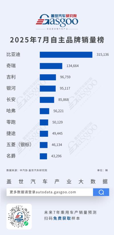 整体而言,2025年7月国内自主品牌汽车市场呈现头部主导、多元竞发的特征。自主品牌在技术创新、产品优化与市场拓展上的努力成效显著,正加速抢占国内汽车市场份额,并且在全球汽车产业变革浪潮中,有望进一步提升国际影响力。
