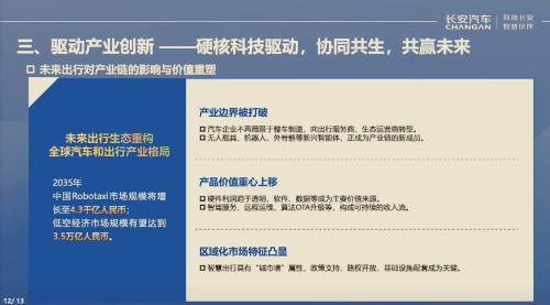 重庆长安汽车股份有限公司副总裁、重庆长安科技有限责任公司总裁贺刚则谈到,目前产业边界正在被打破,汽车企业不再局限于整车制造,而是向出行服务商、生态运营商转型。无人载具、机器人、外骨骼等新兴的智能体,正成为产业链的新成员。而产品价值的重心也在上移,硬件利润趋于透明,软件、数据等成为主要的价值来源,自驾服务远程运维算法OTA升级等构成可持续的收入流。区域化市场特征凸显,智慧出行具有“城市墙”属性,政策支持、路权开放,基础设施配套成为关键。