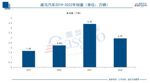 2018-2021年,威马销量呈现持续增长态势:2019年威马汽车总销量达1.68万辆;2020年增至2.24万辆;2021年达到顶峰4.42万辆。这段时期可谓是威马的发展黄金期。