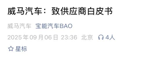 时隔两年半,威马汽车官方公众号于9月6日发布了一则题为《致供应商白皮书》的推送,沉寂多时的威马再度回归公众视野。