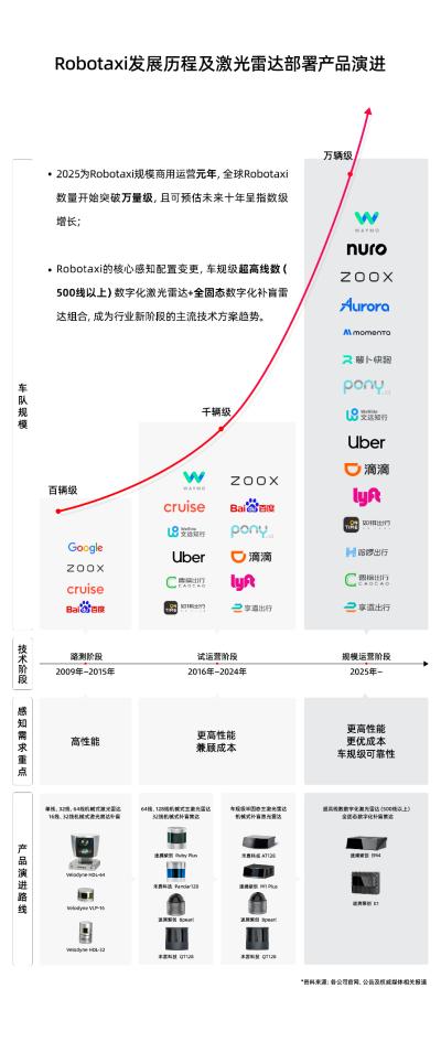 这一时期,Robotaxi从技术研发走向区域性试点运营,激光雷达技术路线开始分化,成本问题凸显。