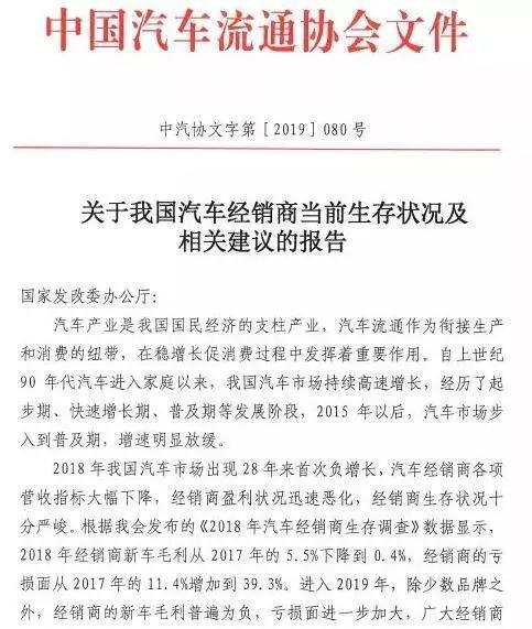 中国汽车流通协会向国家发展和改革委员会、工业和信息化部、商务部、国家市场监管总局四大部委递交《关于我国汽车经销商当前生存状况及相关建议的报告》,非常清晰指出汽车厂家与经销商存在三大矛盾。