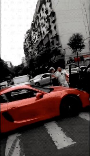 内容确实也很劲爆,一辆保时捷718想在人行横道强行调头,但是被一辆耿直的奇瑞5给挡住了,之后两人在路中间发生对峙。