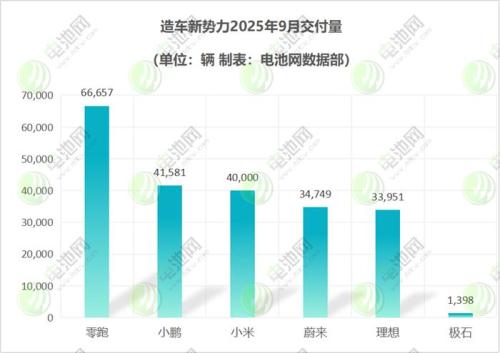 进入2025年,凭借出色的产品设计及产品力,新势力销量持续拉高。9月,新势力各大车企再次接连刷新交付新高,其中零跑月销首破6万大关,朝7万交付门槛迈进;小鹏汽车、小米汽车月交付首破4万,且在手订单依然十分可观;三品牌协同作战后,蔚来公司交付量也持续拉升,其中乐道凭借L60、L90出色的性价比,正在成为蔚来公司销量主力;作为石头科技创始人再创业的品牌,极石汽车销量正在稳步增长,今年内也持续破千销量。
