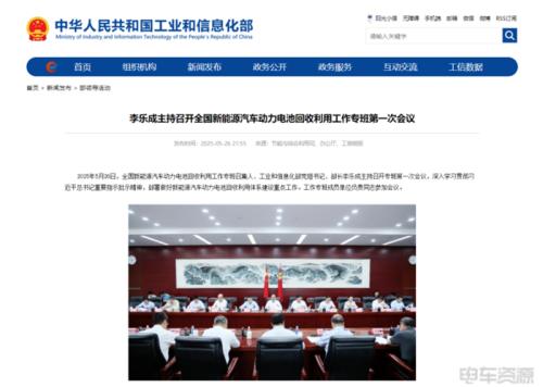 动力电池回收利用也被提升至国家战略层面。2025年5月,工业和信息化部部长李乐成主持召开全国新能源汽车动力电池回收利用工作专班第一次会议,会议明确指出要做好动力电池回收利用工作。
