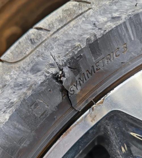 这我当然是不可能知道的。而交流之后才知道,他那台Su7,左前轮今年6月份时被扎过,破损的口子略大。不过鉴于是选配的20寸梅花轮毂,米其林Pilot Sport EV的价格也着实不低,所以最后还是选择修补,“反正凑合着再开一段就是。”