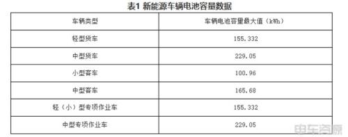 即更新补贴金额最高不超过每辆车28万元(退坡后最高不超过22.4万元)的补贴金额没有变,变化的是新增了一个新能源车辆电池容量数据的表格,限定了轻型货车/中型货车/小型客车/中型客车等车型的电池容量最大值。