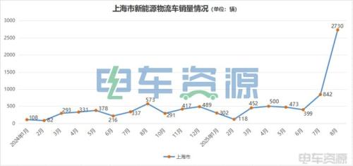 电车资源统计数据显示:8月份上海新能源物流车销量达到2730辆,单月销量超过今年上半年累计销量,更是近3年来首次跻身全国前十省份,排名第六。