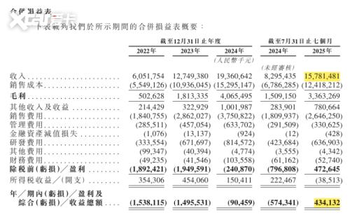 从招股书披露的短期业绩来看,岚图汽车近期的业绩表现确实交出了一份具有阶段性突破的“成绩单”。2025年前7个月,公司实现营收157.82亿元,较2024年同期的82.95亿元大幅增长90.2%。更关键的是,其净利润达到4.34亿元,一举扭转了2022年净亏损15.38亿元、2023年净亏损14.96亿元、2024年净亏损9.05亿元,连续三年亏损的局面。