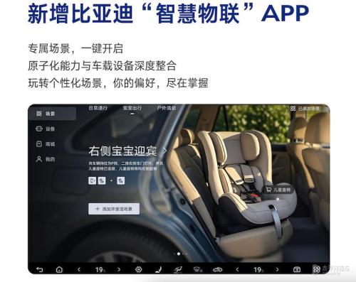 “智慧物联”APP:专属场景可“一键开启”,车载设备与“原子化能力”深度整合,用户的个性化用车偏好(如座椅记忆、空调习惯等)能被更精准地满足。
