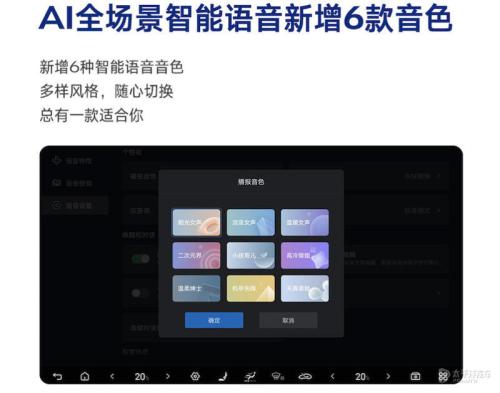 AI语音焕新:全场景智能语音新增6款音色(温柔、活力、沉稳等风格任选),与车机交互仿佛在和不同“性格”的伙伴对话,新鲜感与趣味性十足。