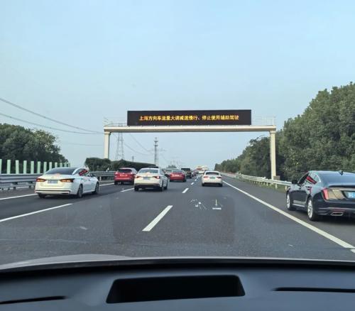 “上海方向车流量大请减速慢行,停止使用辅助驾驶。”