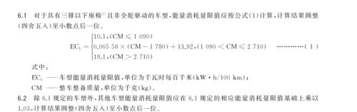 如果非6.1规定的车型,那么百公里电耗限值则在6.1规定的基础上再乘以1.03。