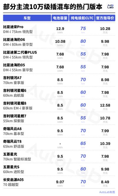 这其中,插混(含增程,以下内容提及的插混均包含增程)车纯电续航里程“不低于100公里”的要求,可谓是在10万级插混车的池中扔了一颗炸弹,影响力巨大。